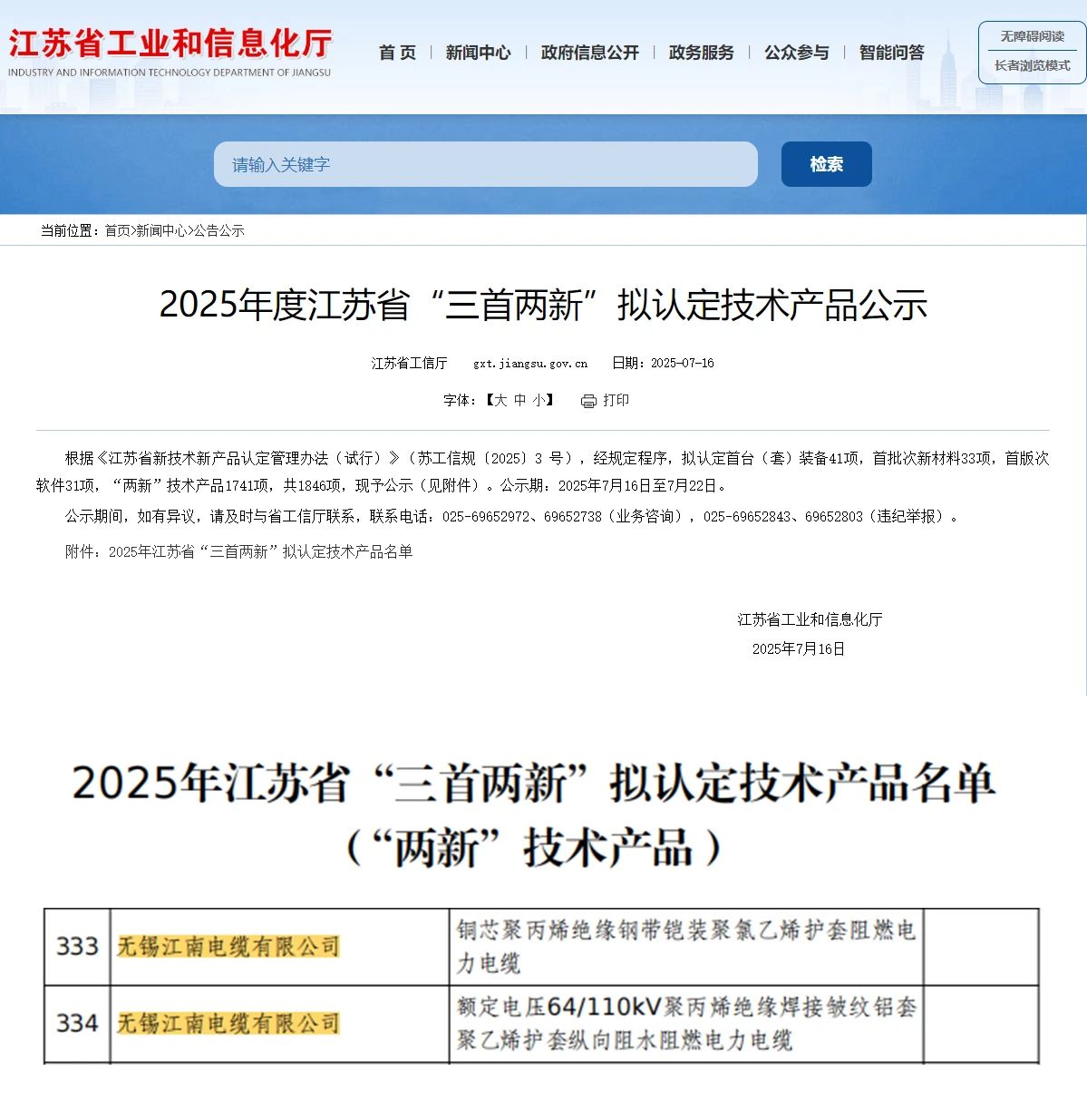【科技賦能 創(chuàng)新突破】江南電纜兩項(xiàng)新產(chǎn)品獲省級(jí)認(rèn)定!